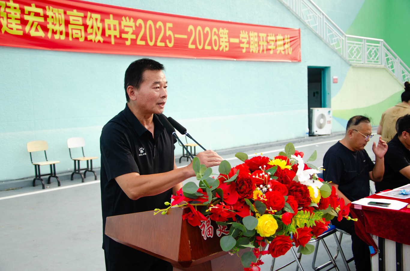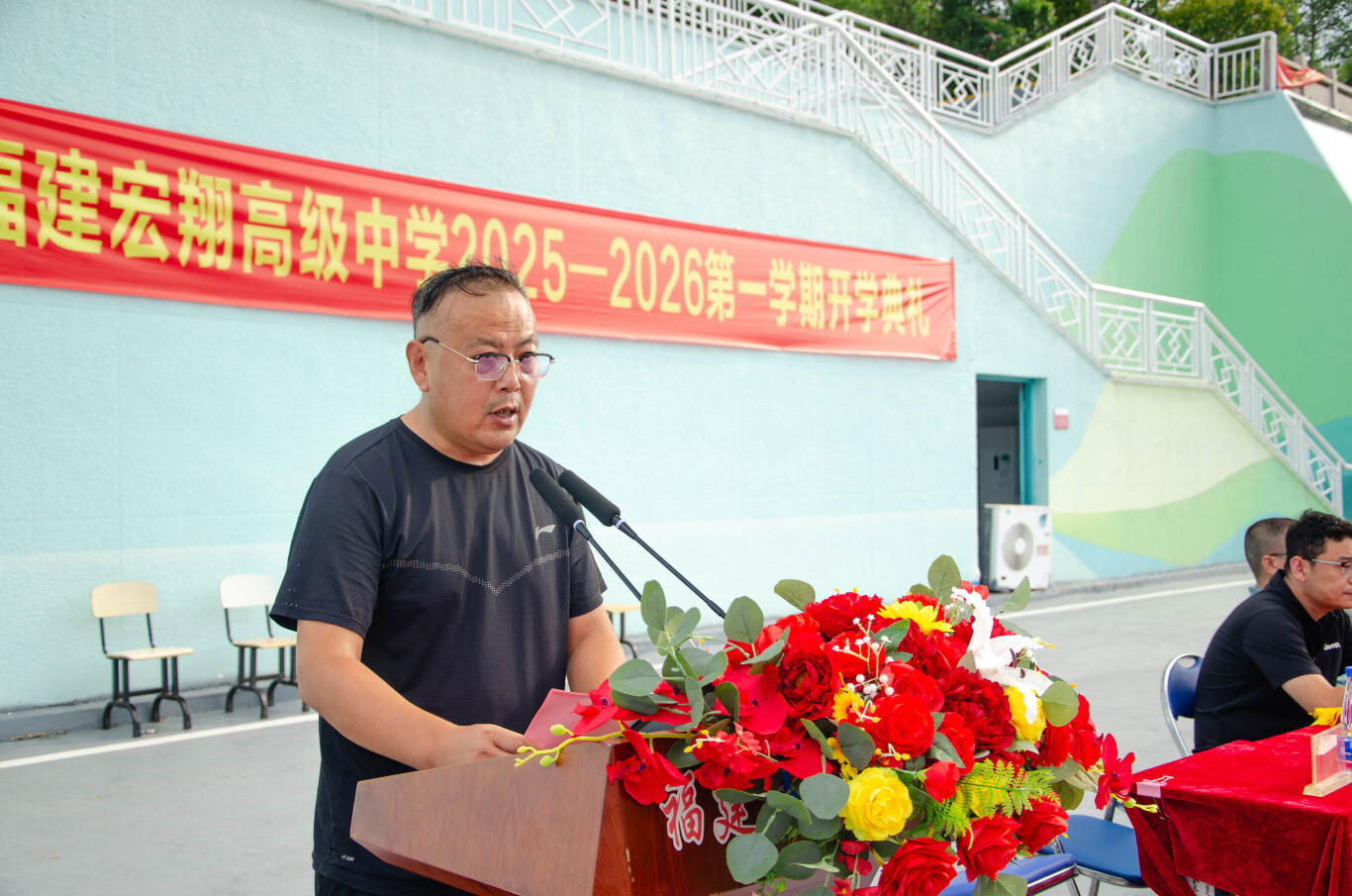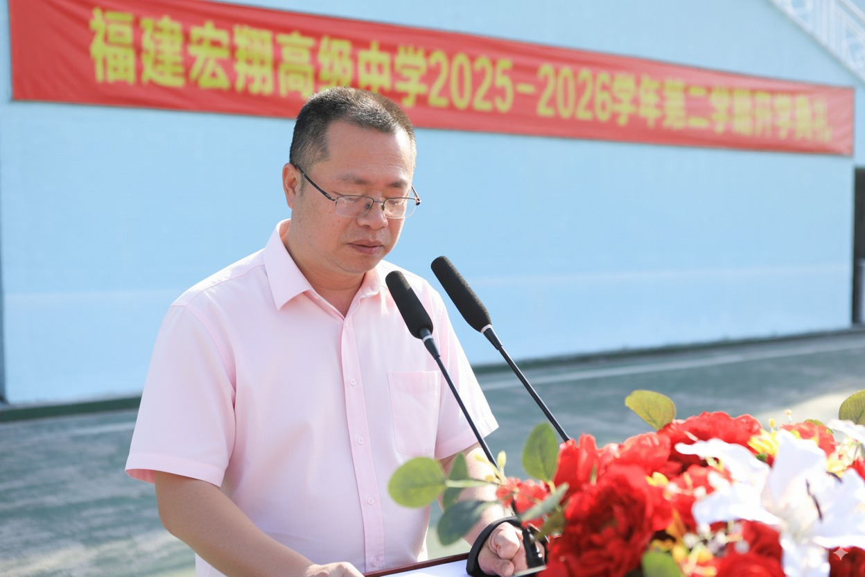 “宏翔奖学金”获得者合影 总结讲话 ![]() 董事长、校长徐定军新学期致辞 开学典礼最后,福建宏翔高级中学董事长、校长徐定军作了总结性讲话。新的学期,既是成长的新起点,也是校园续写荣光的新征程,他提及上一学年师生共同创下的佳绩,感谢教职工以匠心育人、学子以拼搏筑梦;他希望往后宏翔全体学子应当始终以求知态度夯实学业、以向阳心态全面发展、以家国格局涵养担当;并号召全体师生以典礼为新起点,并肩奋斗、脚踏实地,共同续写宏翔高中新学年的精彩篇章。