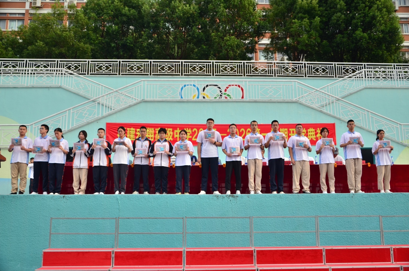 学科竞赛、科技创新、体育、艺术等比赛取得优异成绩的团体及个人获得者合影 ![]() “优秀班级”获得者合影 ![]() ![]()
